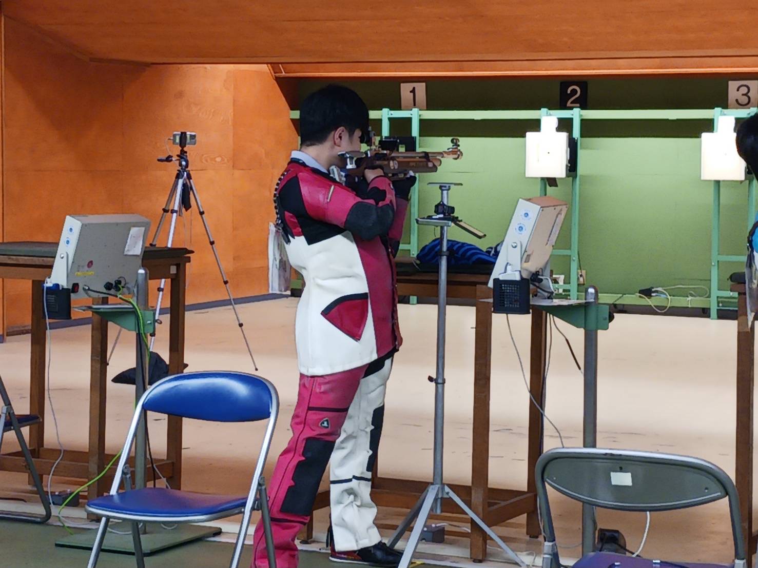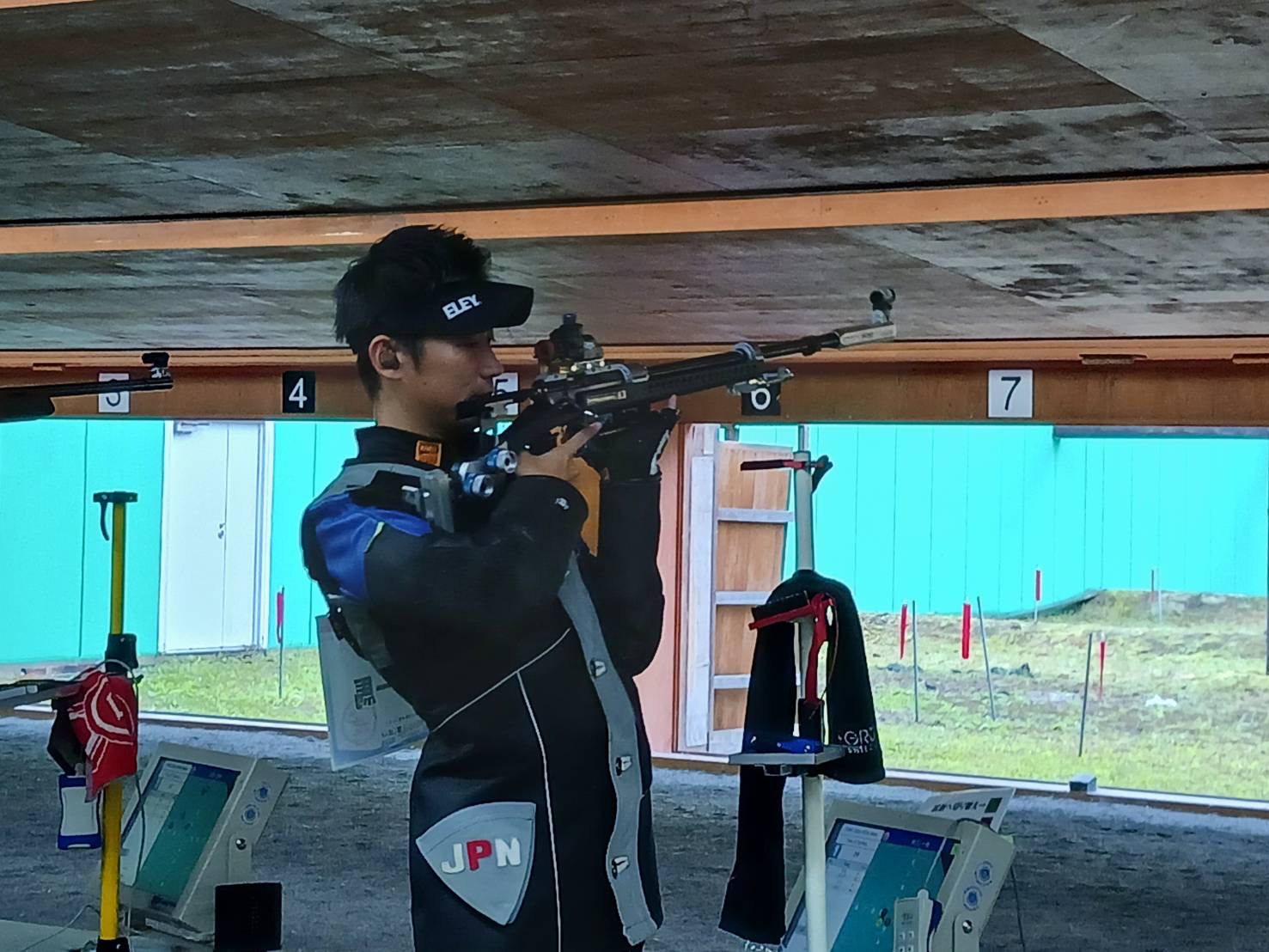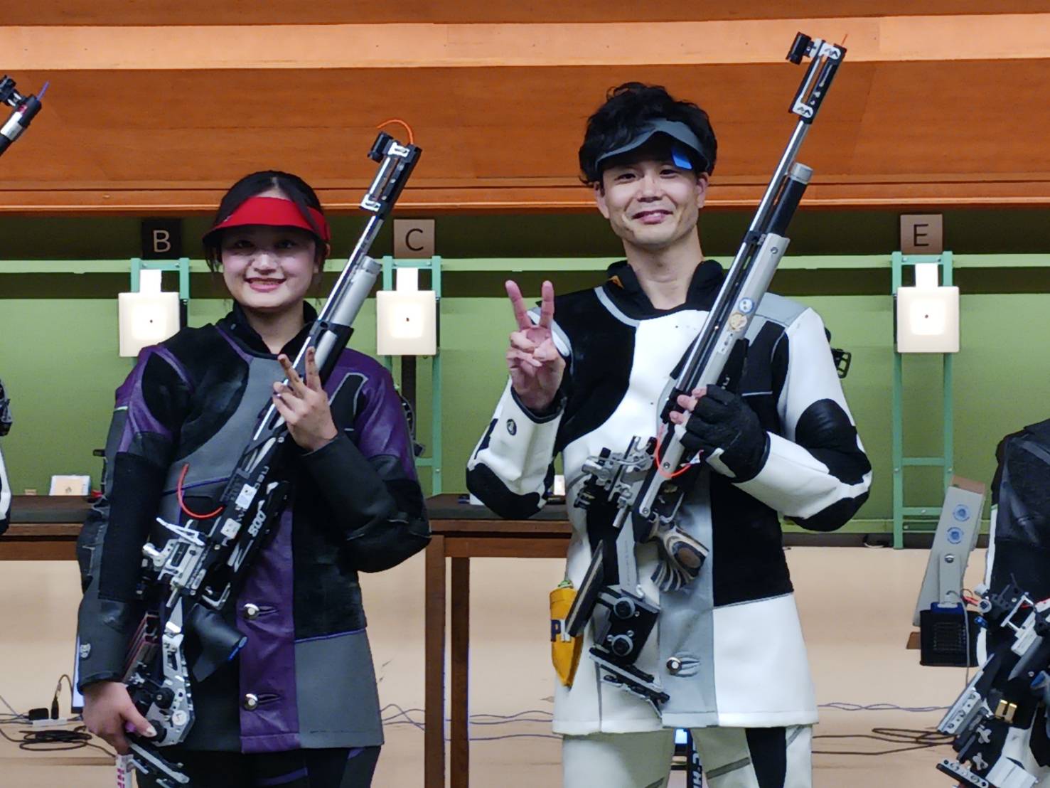 ライフル射撃・成年男女混合のAR種目で岩崎貴文選手(滋賀県スポーツ協会)と村田薫美選手(同志社大学)のペアが優勝です。