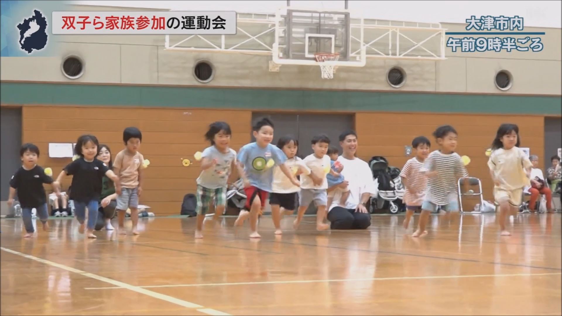 大津市で19日、双子や三つ子のいる家庭を支援する団体「ツインクルザウルス」が運動会を開き、参加した家族が交流を深めました。