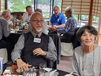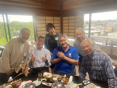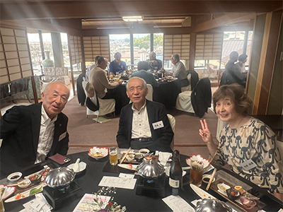 総会に続く懇親会は、来賓として出席をしていただいたびわ湖放送の西川忠雄社長の挨拶の後、第6代社長の馬場 章氏の乾杯の音頭で幕が開き、懐かしい皆さんとの和やかな雰囲気の中、会食の楽しいひと時を過ごしました。